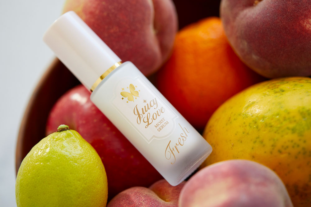 蝶々まず香りですが、ジューシィシリーズを通して使わせていただいている、桃の、柔らかで幸せになる天然の香りに加え、今回は特別に入れていただいたはちみつ系成分【ロイヤルエピジェン】の影響もあり、少し甘やかな香りです。テクスチャーは、いかにも薬効たっぷりな、ミルク系の濃密タイプ。でもスッとなじんでべたつきません。朝は10分くらいかな……、モイストセラムフレッシュを肌に浸透させてからCCクリームを塗っていますが、嬉しくなるくらいなめらかに綺麗につきます(#^.^#) そして、夜つけた後は、起きた時に肌がしっとり、柔らかになり、白く輝いているかんじなんです!