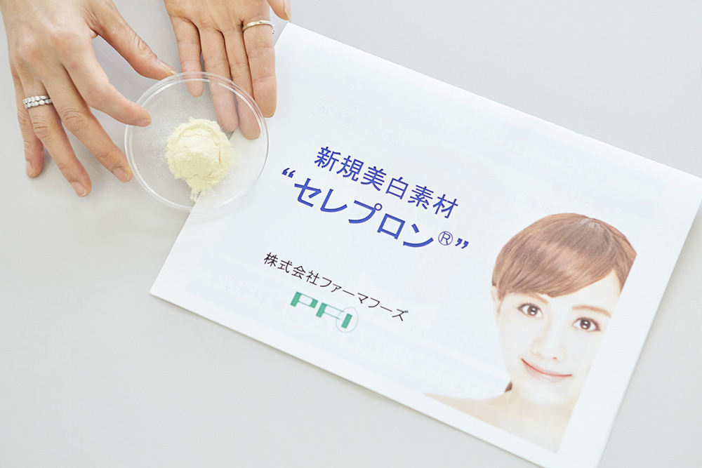 蝶々CCクリームのインタビューでもお伝えしましたが、京都にある活性酵母の開発元ファーマフーズさんに取材に伺いました。その際に顕微鏡で実際に、メラニンがセレプロンによって、ぶわーっと消えてなくなっているものを目の当たりにもしました。美白効果があるということで、セレプロンが今東南アジアで大人気で、爆発的に売れているそうです。私も試供品で食用のいただいたものを飲んでいますが、確かに肌が白くなるかんじがします。