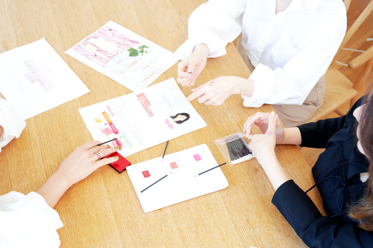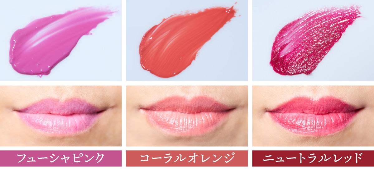 中田色調整にはなかなか苦戦しました。黄みの強いイエローベースの肌にはコーラル系、青みのあるブルーベースの肌には青みピンク系が似合うといったパーソナルカラーの概念が浸透しているので、ついその色にばかり頼りたくなるのですが、自分のパーソナルカラーではない色もぜひ楽しんでいただきたくて。
