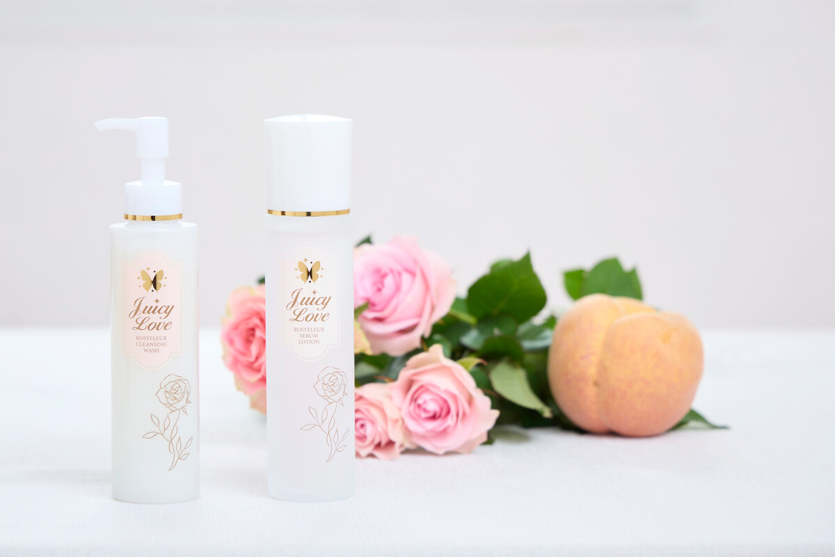 2008年の誕生以来、愛され続ける蝶々プロデュースの “ジューシィラブ(JUICY LOVE)”シリーズ。お手入れの基礎ともなるローションとクレンジングウォッシュが、このたび【ロージィフルールシリーズ】として生まれ変わりました! バラと最先端の美容成分で進化した新シリーズの開発秘話を、蝶々と、リップパレット開発でもおなじみのフューチャーラボの中田さん、そして、ジューシィラブシリーズでは欠かせない、目玉成分を提供いただいているファーマフーズから、研究員の坂下さんに話を伺いました。