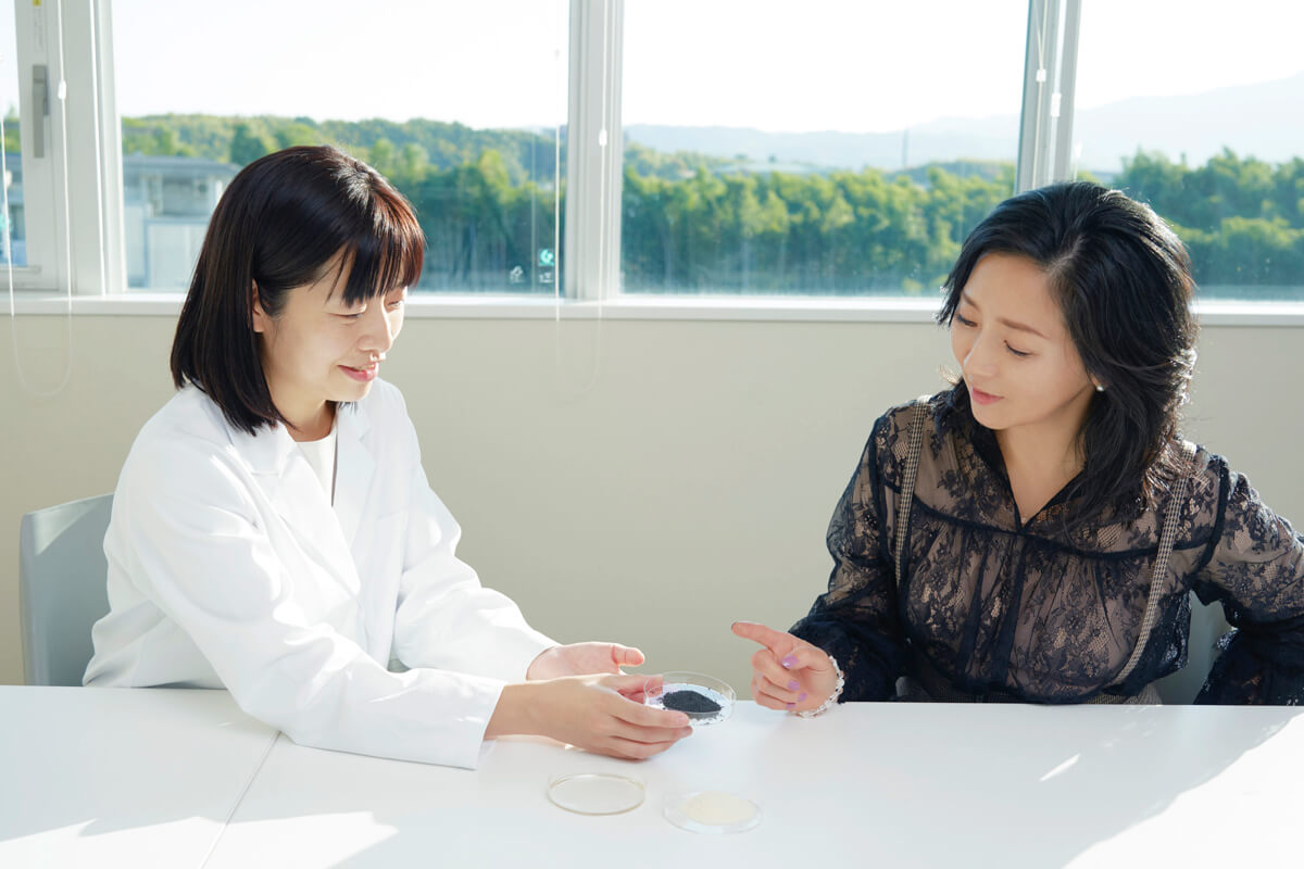 坂下ランコールは卵殻を焼いたものと、炭をブレンドしています。 卵殻自体は昔から汚れに良いとされており、焼くことでその力がさらに高まることが検証されました。炭にも多孔質で吸着する機能があります。 卵の殻の〈天然フィルター機能〉と炭の〈汚れ吸着力〉の掛け合わせ……つまり、お肌に付着する汚れや悪影響を及ぼす物質を、ランコールが吸着してお肌をクリーンにしてくれるんです。